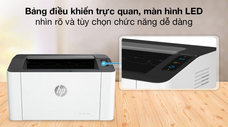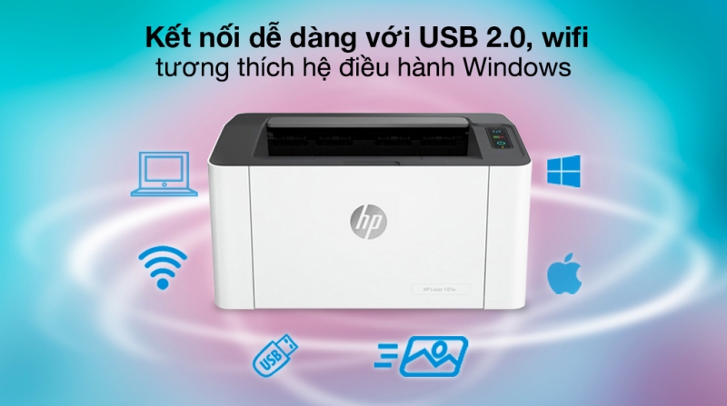 Máy in Laser Trắng Đen HP 107w WiFi (4ZB78A) cực đáng giá để lựa chọn nhờ khả năng in ấn liên tục, chất lượng bản in đẹp, rõ, in thuận tiện qua kết nối không dây và có dây, giá cả phải chăng.