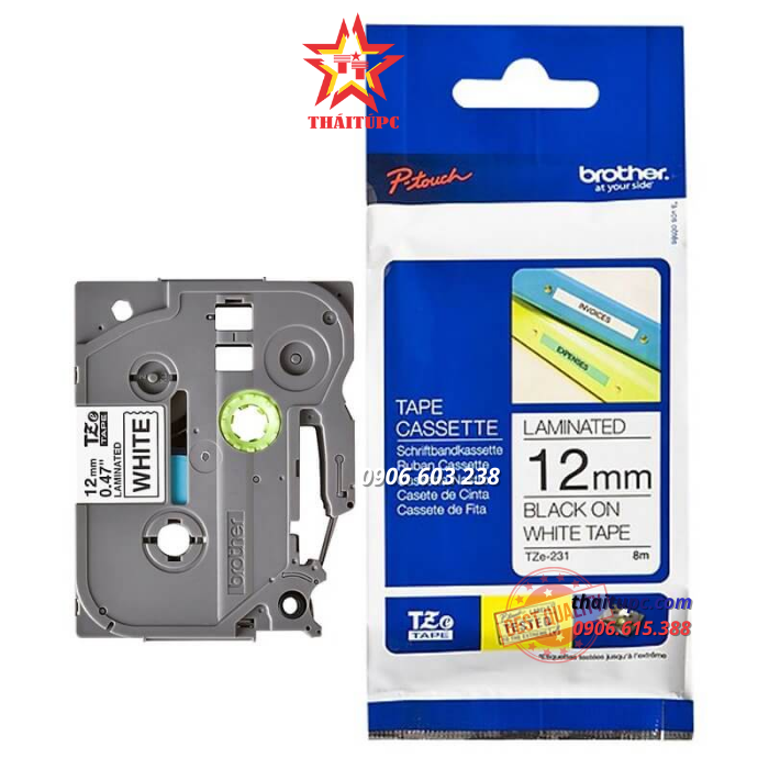 Băng keo nhãn Brother TZE-231 dễ dàng lắp đặt, chất lượng tốt đảm