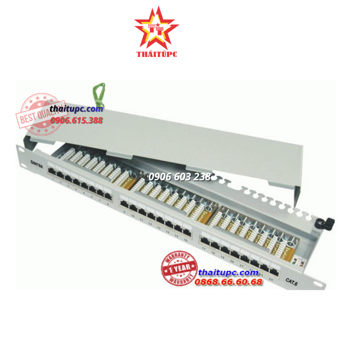 - Cat.6 19” 110/Krone type fully shielded patch panel 24 ports, 1U size Component level