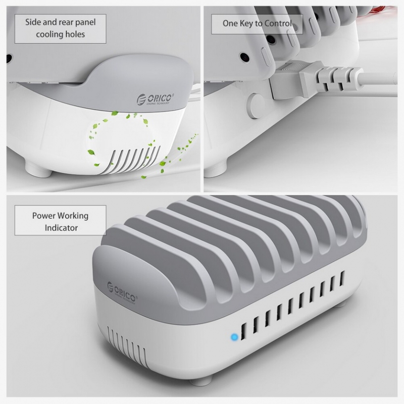 Sạc Điện Thoại Orico USB 10 Cổng 2.4A DUK-10P được thiết kế dạng Dock có thể để 10 điện thoại hoặc tablet khi sạc giúp bạn tiết kiệm thời gian hiệu quả.