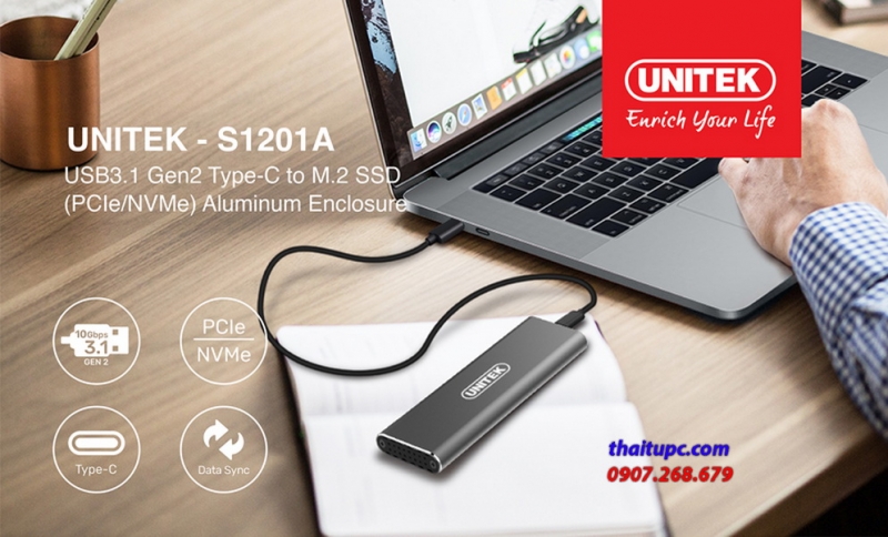 SSD BOX TYPE-C -> M.2 PCIE/NVME UNITEK (S1201A)