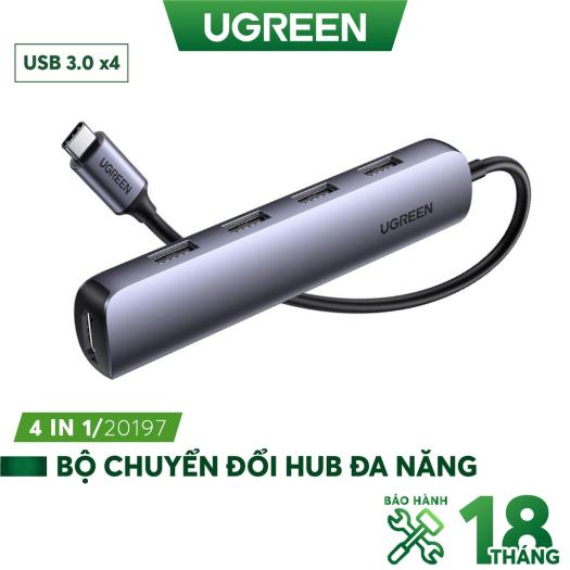 Thiết bị mở rộng USB Type C to HDMI 4K@30Hz kèm Hub 4 cổng USB 3.0 Ugreen 20197