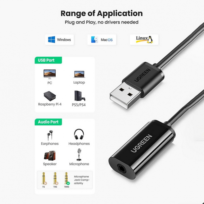 Ugreen 10330 có thiết kế nhỏ gọn với lớp vỏ bằng nhựa ABS siêu bền. Thiết bị chỉ cần cắm là nhận mà không cần cài đặt driver, không cần nguồn điện bên ngoài. Cáp chuyển Ugreen có tính tương thích cao, hoạt động với mọi thiết bị sử dụng cổng USB như Máy tính, Laptop, Google Chromebook, Macbook, Android TV Box…