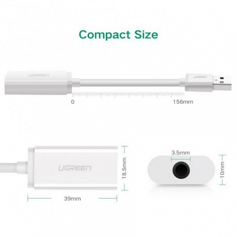 - Adapter USB Audio 3.5mm Ugreen 30712 thiết kế nhỏ gọn tinh tế, với lớp vỏ bằng nhựa ABS siêu bền. Thiết bị cắm là nhận mà không cần cái đặt driver, không cần nguồn điện bên ngoài. Bộ chuyển USB ra Loa Ugreen có tính tương thích rộng hoạt động với mọi thiết bị sử dụng cổng USB bao gồm: Máy tính, Laptop, Google Chromebook, Macbook, Android TV Box...